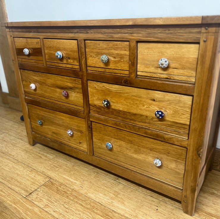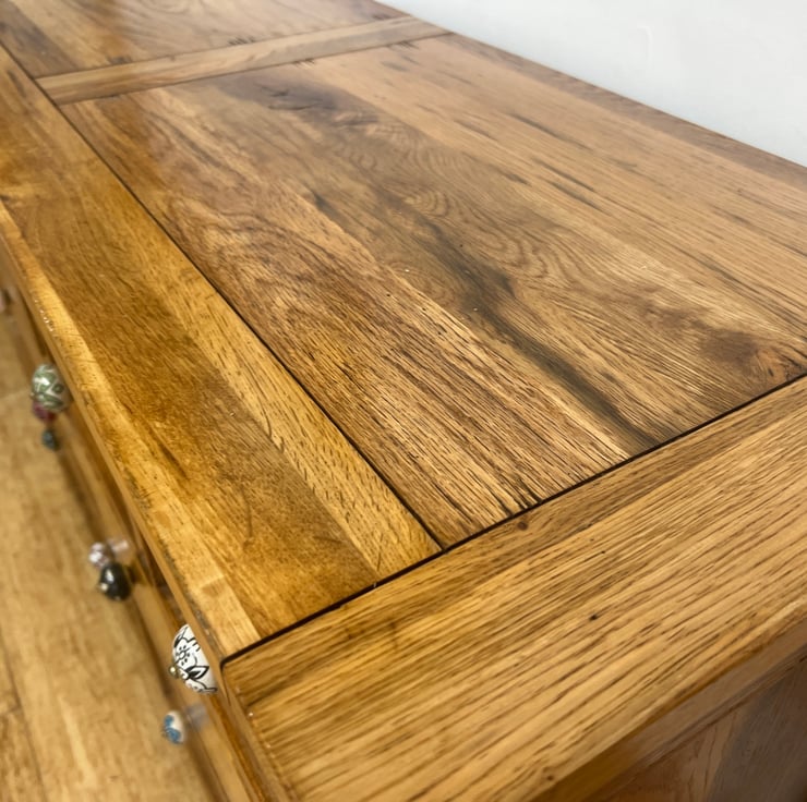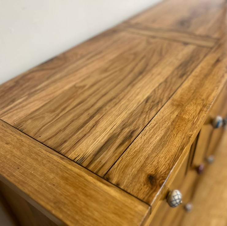 Everything is stained & sealed with all natural products that I mix and match myself, using a mix of natural oils, waxes & stains.