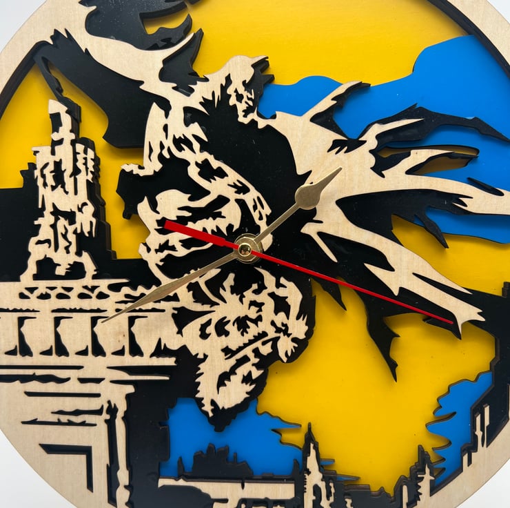 The Dark Knight–inspired layered laser-cut clock is a bold, cinematic timepiece that blends functional design with striking visual artistry. Featuring a multi-layer construction, this clock uses precision laser-cut elements to create depth and shadow, forming an eye-catching tribute to the iconic Gotham vigilante.