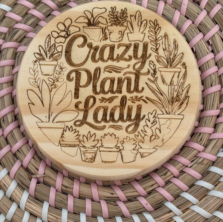 Add a sense of wanderlust to your space with the “Crazy Plant Lady” wooden coaster — a charming and practical piece inspired by life on the road. Made from natural wood, this 10cm round coaster features a finely laser-engraved camper van design for a crisp, durable finish that won’t fade or peel over time.