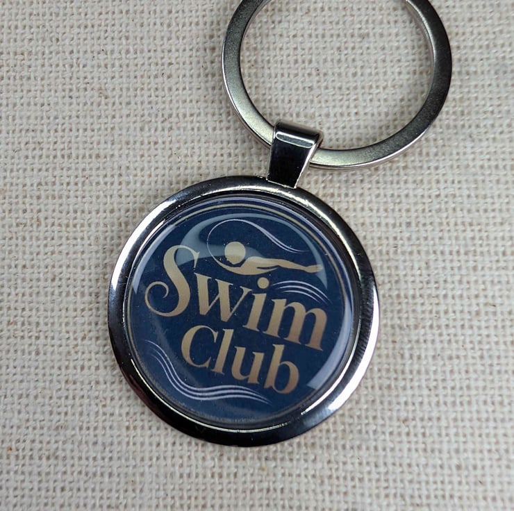 Swim Club keyring – a stylish, swimmer-inspired accessory with a glossy resin finish for added durability. Lightweight yet sturdy, this 36mm keyring is perfect for keys, swim bags, or backpacks. A thoughtful gift for swimmers, wild swimmers, and water lovers. Handmade with care and ready to use.