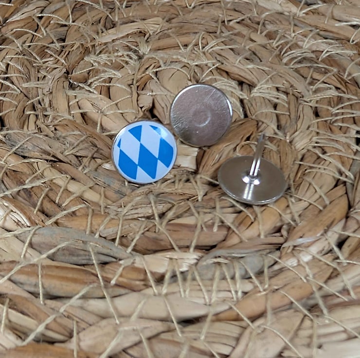 Celebrate your travels to Bavaria with this detailed flag map pin, featuring the official Bavaria state flag. Each pin measures 10mm, perfectly sized for display on travel maps, cork boards, or wall collections.