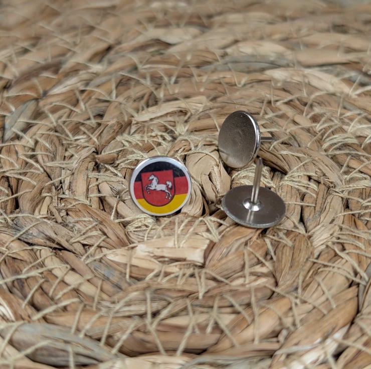 Celebrate your travels to Lower Saxony with this detailed flag map pin, featuring the official Lower Saxony state flag. Each pin measures 10mm, perfectly sized for display on travel maps, cork boards, or wall collections.