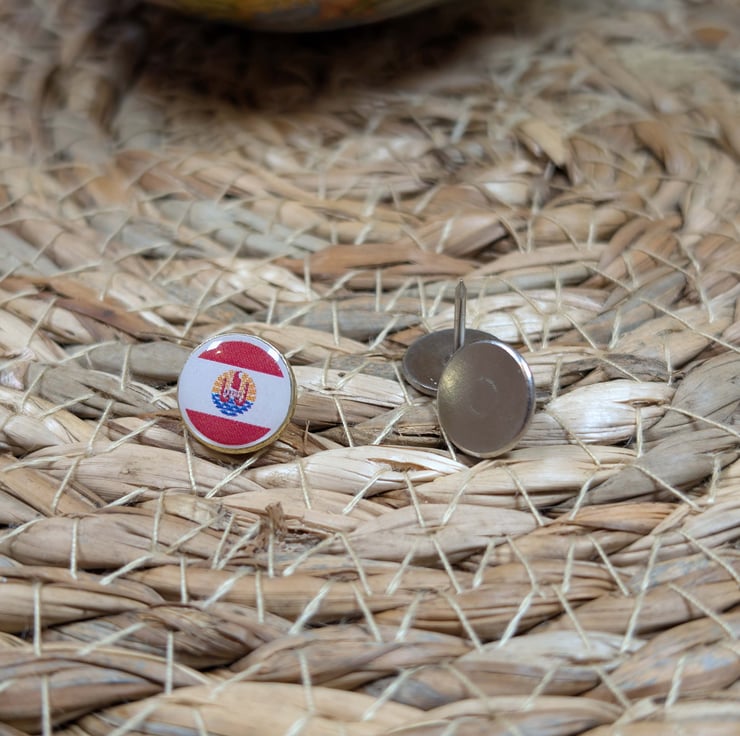 Celebrate your travels to French Polynesia with this detailed flag map pin, featuring the official French Polynesia flag. Each pin measures 10mm, perfectly sized for display on travel maps, cork boards, or wall collections.
