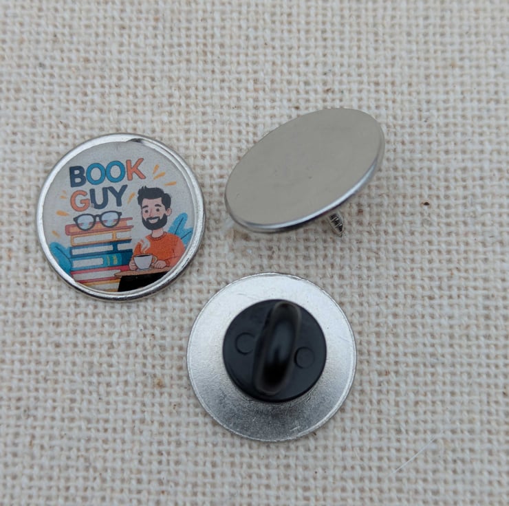 Show Off Your Bookish Pride – “Book Guy” 18mm Resin Pin