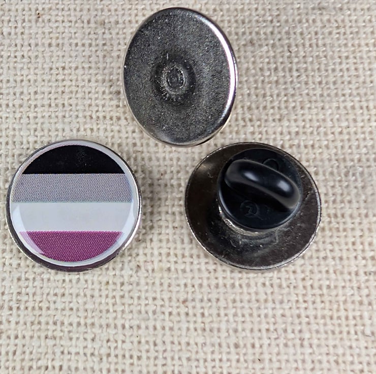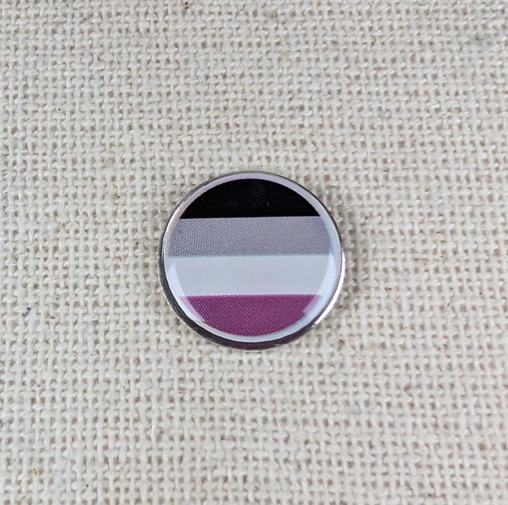 Show pride and celebrate inclusivity with our Asexual Flag Pin. This 18mm resin-topped badge features the black, grey, white, and purple stripes of the asexual pride flag, creating a meaningful symbol of identity and LGBTQ visibility. The glossy resin finish enhances the colours and adds lasting durability, making it perfect for jackets, bags, hats, or pin collections.