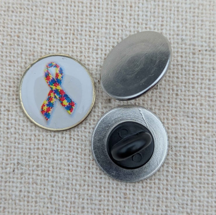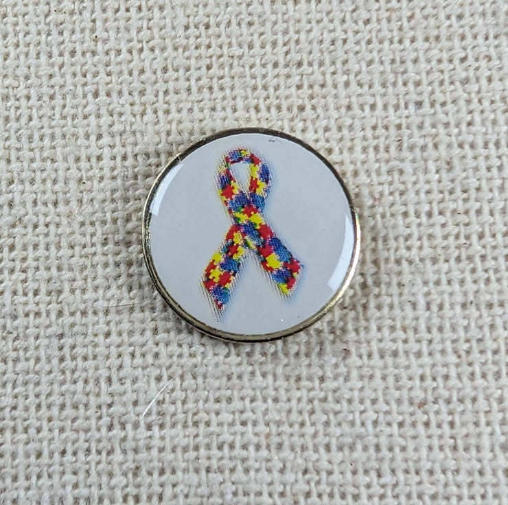 Puzzle Ribbon Pin - Autism Awareness Support Badge - Large Resin Finished Pin Ba