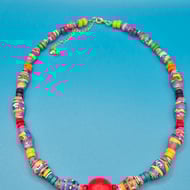 I use recycled paper and I get inspiration from the colour of the paper and whichever pre-loved beads I could find to complement my design - This means that no two pieces are alike.