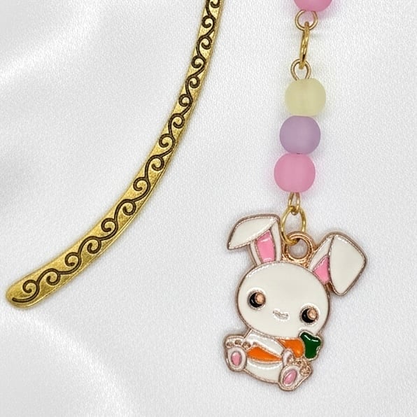 Pretty Easter theme bookmark, featuring a cute bunny charm, delicate glass beads in pastel colours on a golden Tibetan shepherds hook, a pefect gift for Easter, will arrive gift wrapped in tissue in an organza bag.