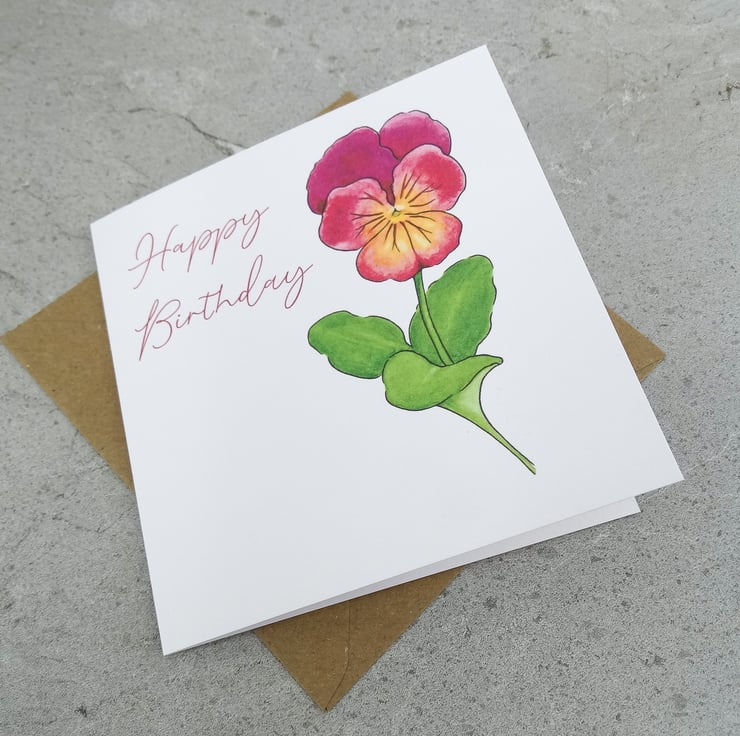My Floral Viola Birthday card has been printed with my original artwork on 'New' white texture FSC approved 280gsm card and comes with a brown kraft envelope protected in a clear biodegradable bag.