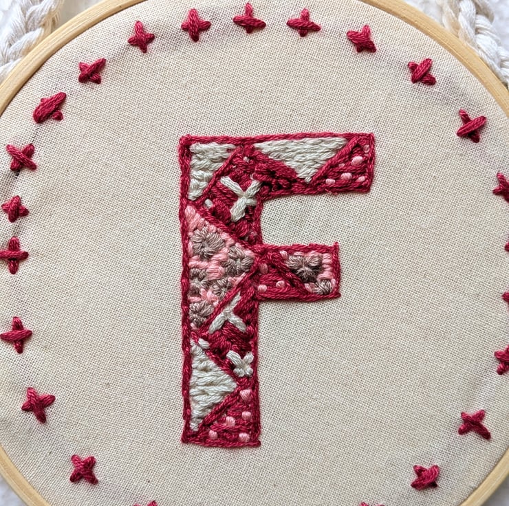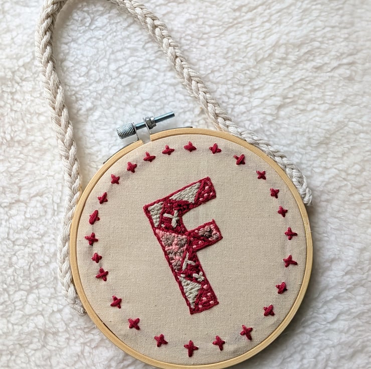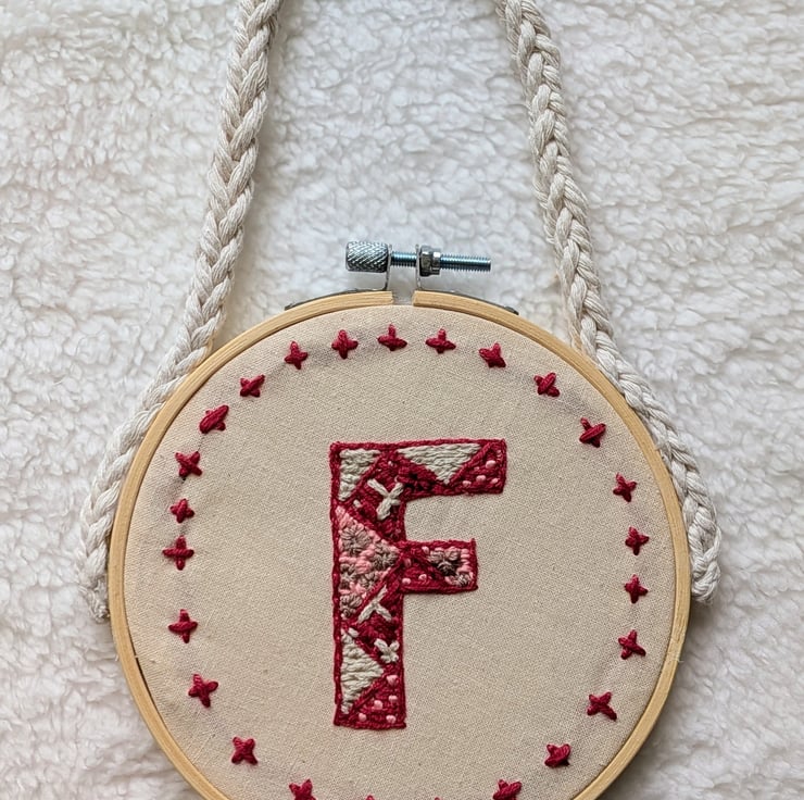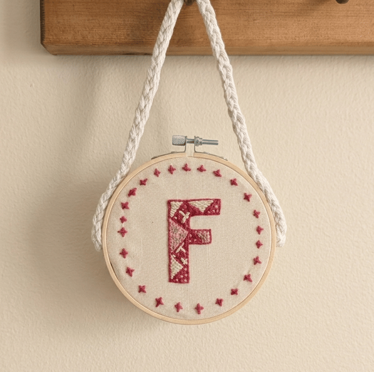 Add a touch of heritage charm to your nursery or gallery wall with this bespoke, hand-embroidered monogram hoop. Each piece is meticulously stitched to order on 100% cotton calico, featuring an intricate array of textured embroidery stitches that bring your chosen initial to life.