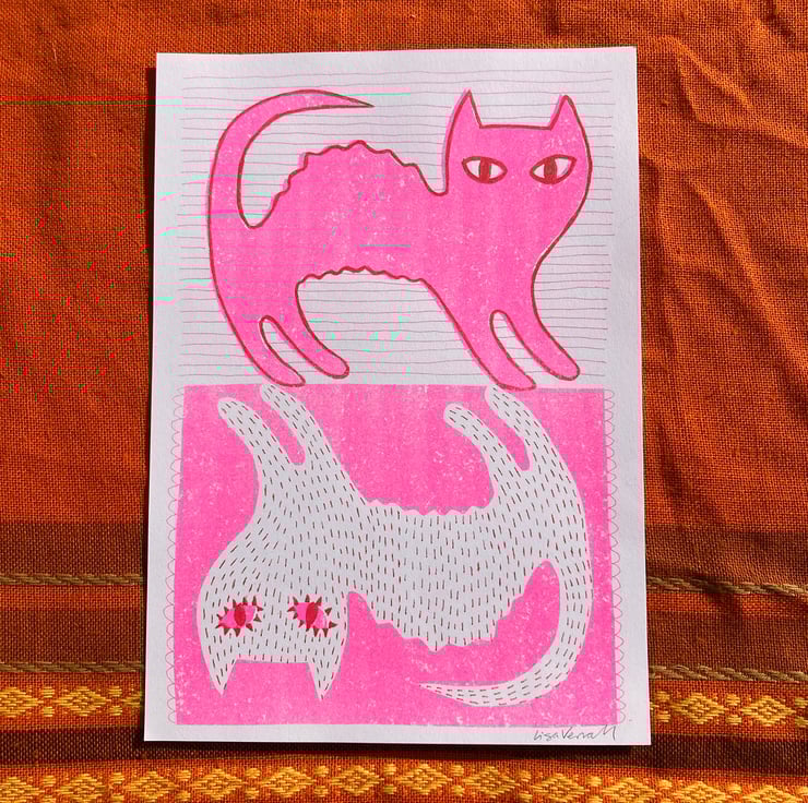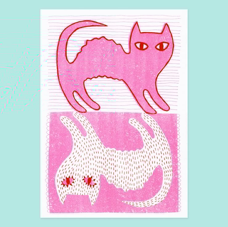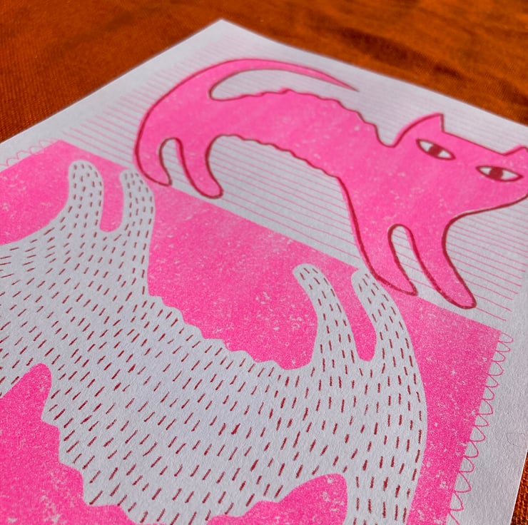 Two-colour risograph print, on 120gsm Munken Pure Rough Cream paper.