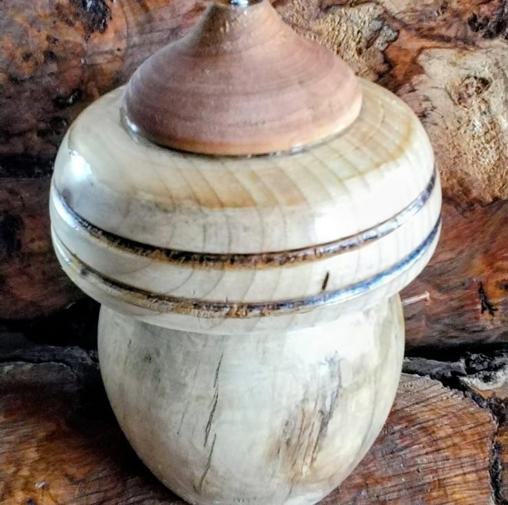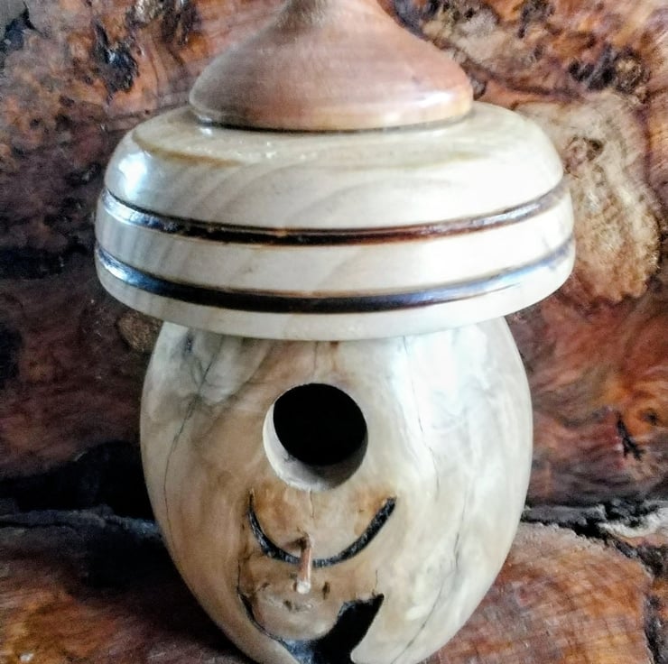 Handturned Bird Nest box. No 1005, size H25cm W16cm. Approx, Varnish finish.