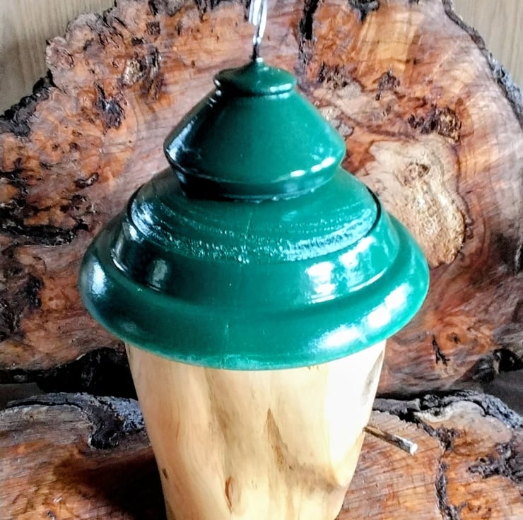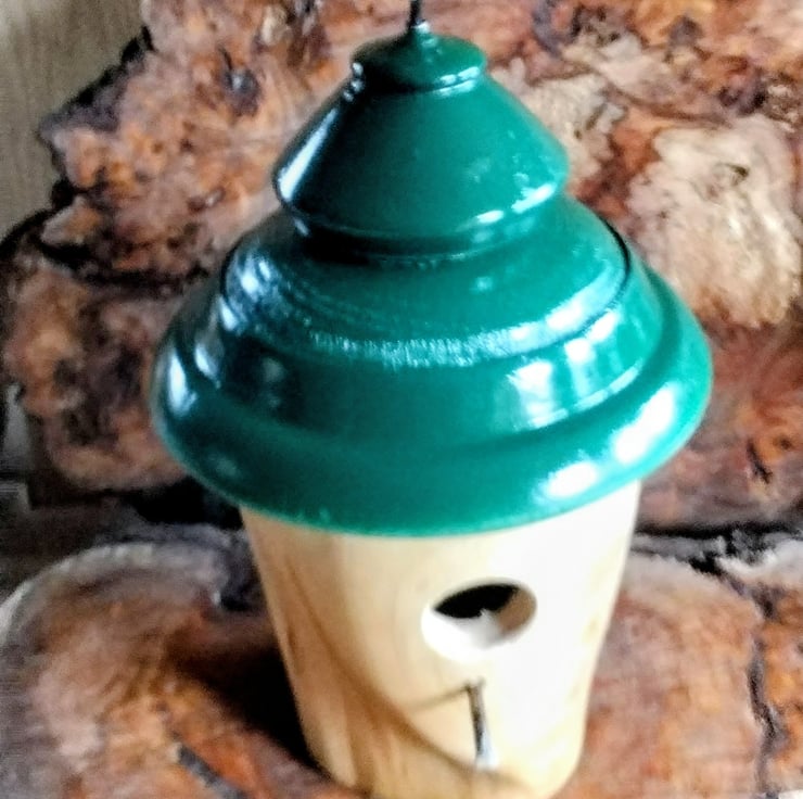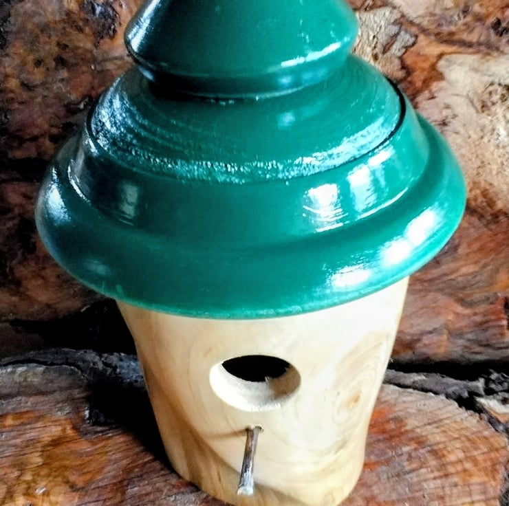 Handturned Bird Nest box. With green top. Item no 1004.size H 28cm W17cm Appox.