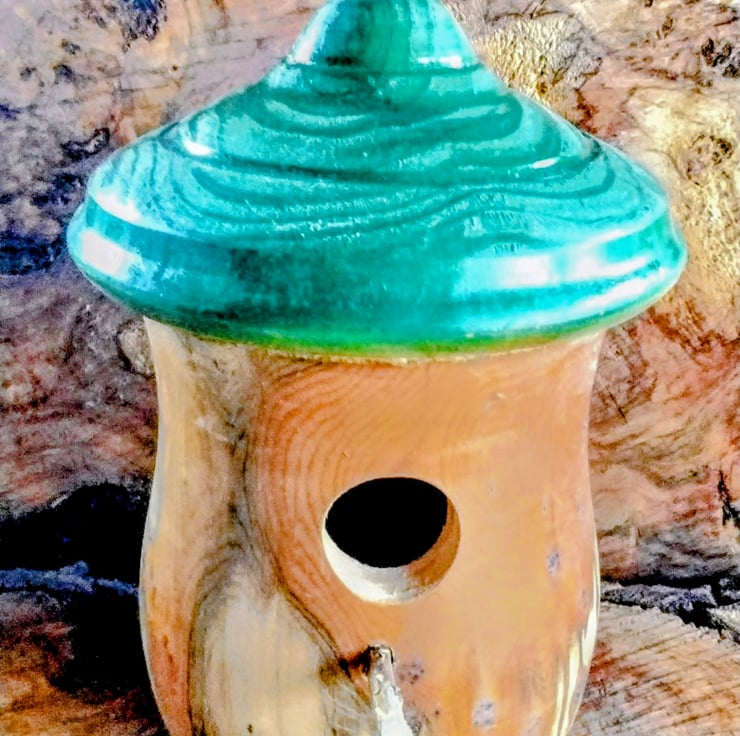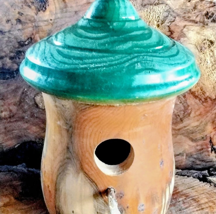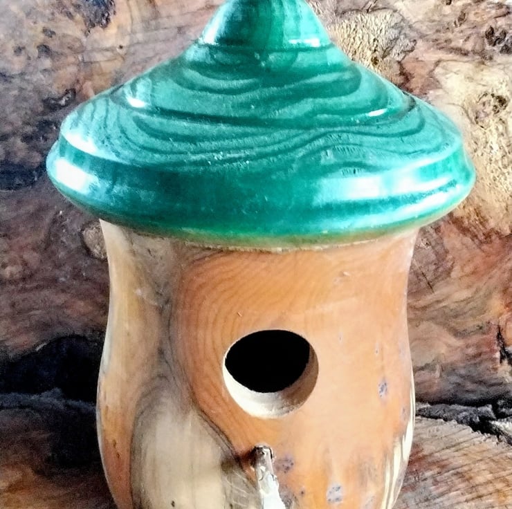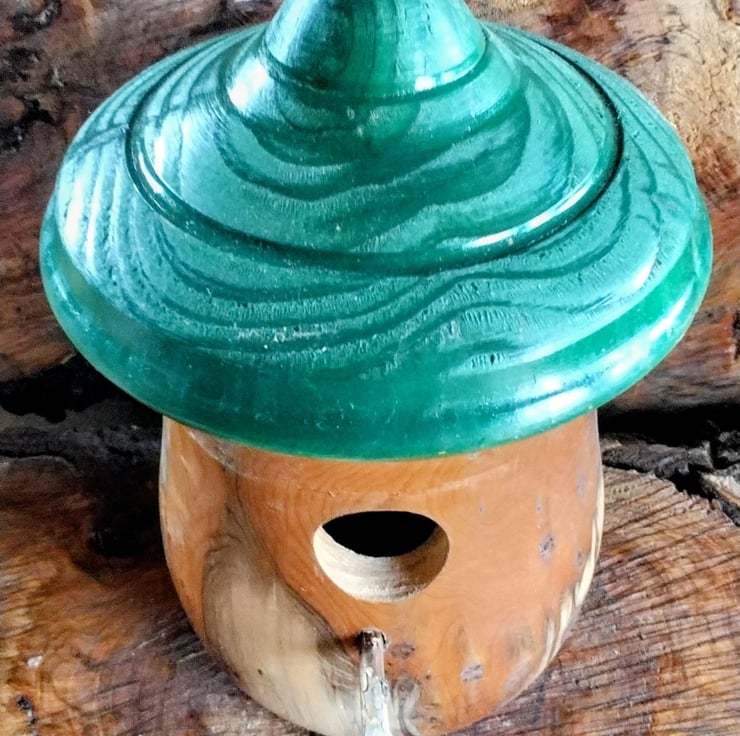 Handturned Bird Nest box. Item no 1006. Size H24 xW 15cm approx. Lovely grain and green top.