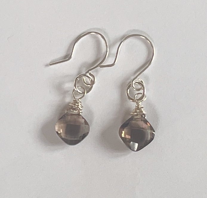 Gorgeous faceted smoky quartz stones on sterling silver settings. 20mm drop. These are a beautiful smoky brown colour. Absolutely unique.
