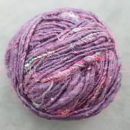 Core spun chunky art yarn spun created from wool with gentle highlights of angelina fibre.