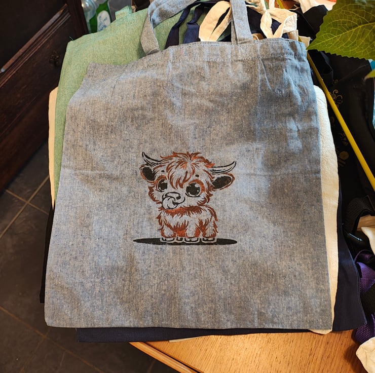 Cotton tote bag with a great design hand painted on the front. You could use it as a gift bag or to make some one smile.