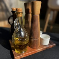 This item is made from solid hardwood (American walnut and cherry) and finished with Danish oil suitable for household use. The product has no sharp edges in normal use. Not intended for children. Avoid exposure to excessive moisture or heat sources. Do not place in dishwasher. Use on a stable, flat surface only.