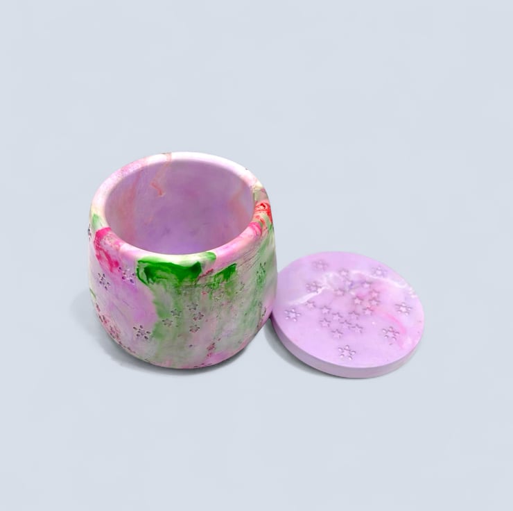 Each box is handmade from a water-based mineral material with a smooth, stone-like feel. The exterior has been hand finished through multiple stages and polished with two coats of plant-based wax sealer for a soft satin finish. Each piece is individually made and finished by hand and may feature visible surface texture, air bubbles, colour variation and slight size or shape differences, making it unique.