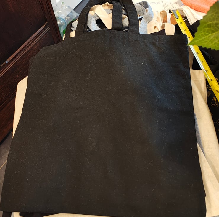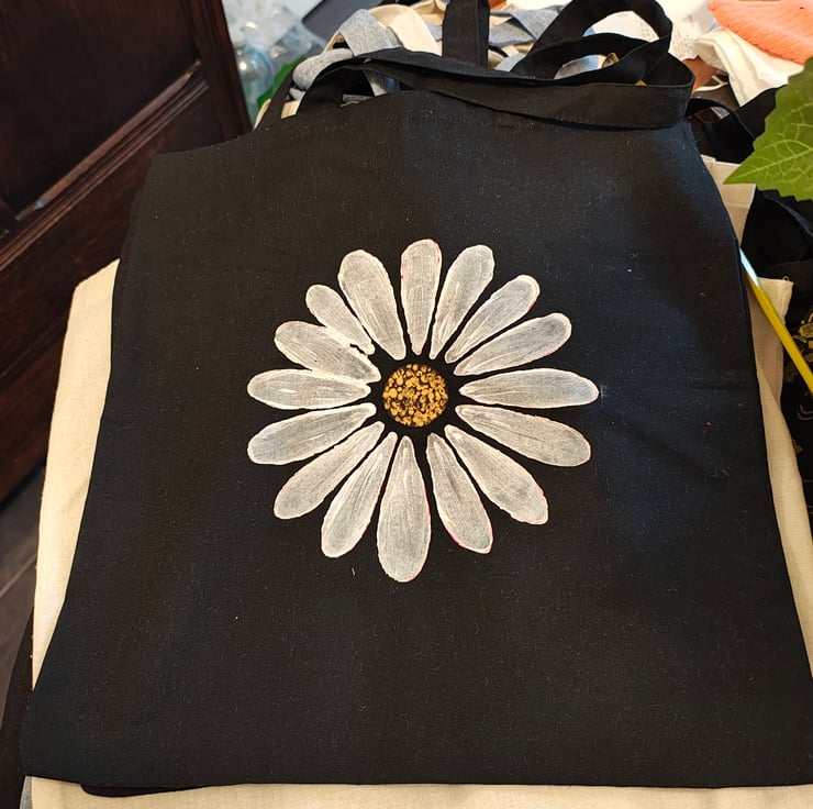 Cotton tote bag with a great design hand painted on the front. Great for carrying your shopping and great as a gift or gift bag.