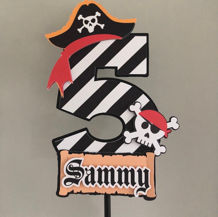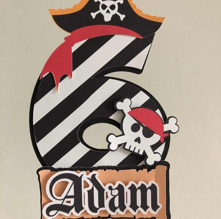 Fun Pirate themed personalised cake topper.