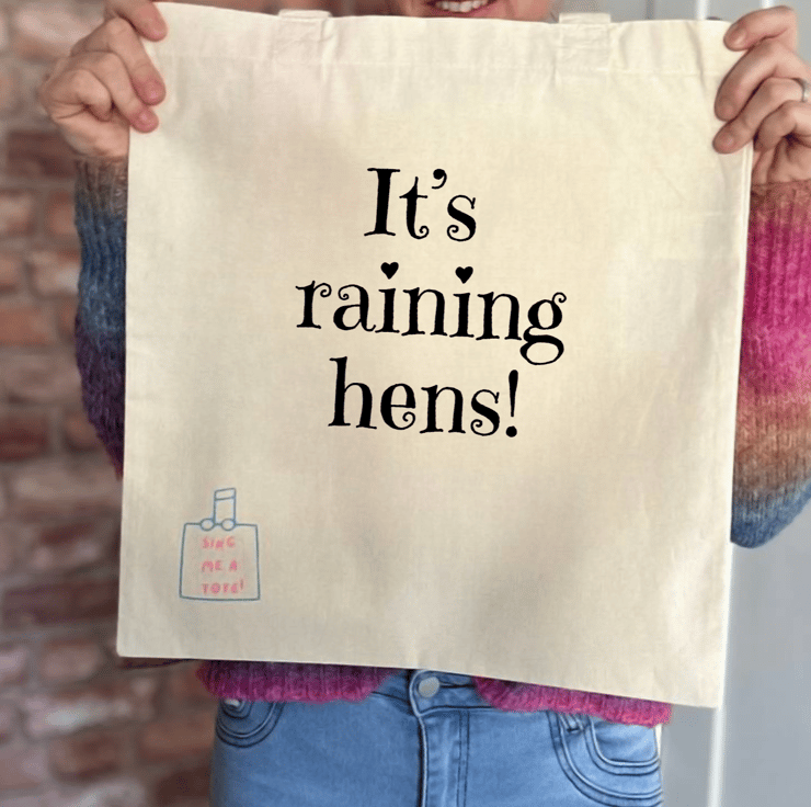 This 'It's raining Hens' cotton tote bag is a generous 38x42cm with a capacity of 10 litres - perfect for keeping your stash of bits and pieces all together whilst on the move.