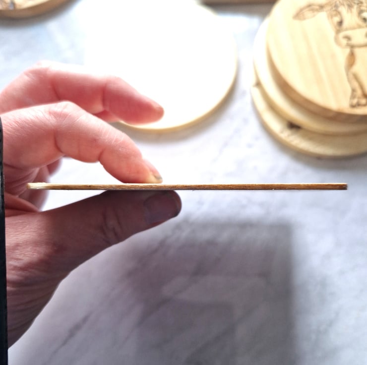 The coaster is approximately 10cm x 10cm and 0.2 cm thick.