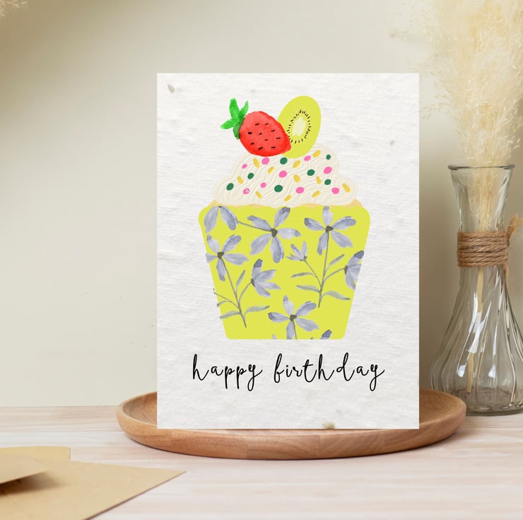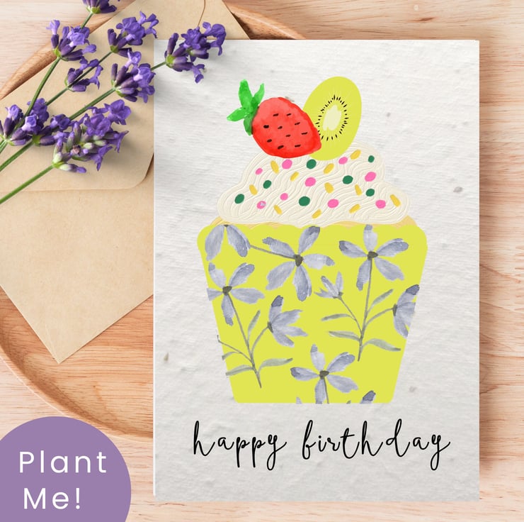 This hand-designed birthday card features a sweet, illustrated cupcake with sprinkles, in a floral case. But the best part? It's a gift that keeps on growing. Once the birthday celebrations are over, your recipient can plant this card a watch it transform into a mini-meadow of UK-native wildflowers.