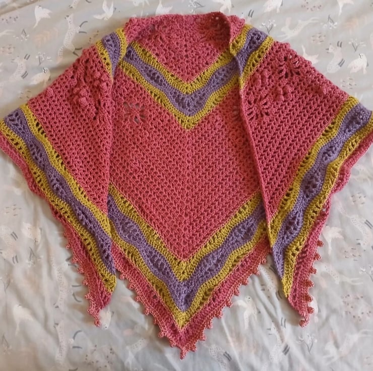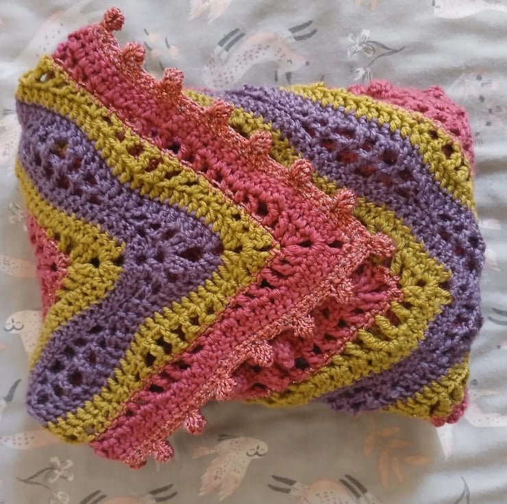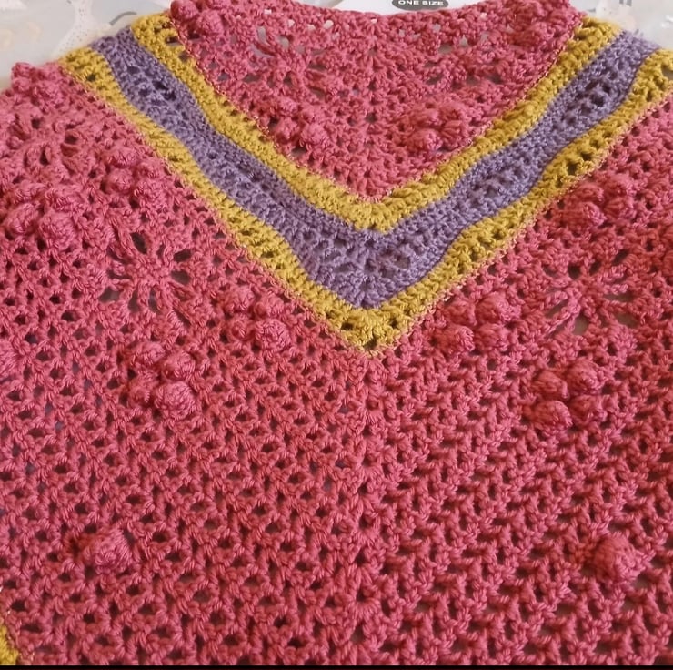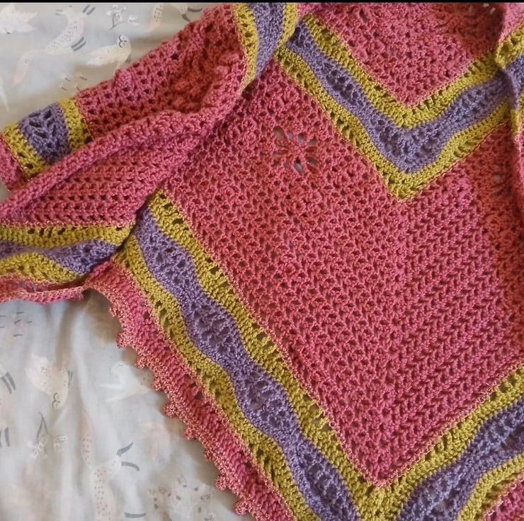 Crochet Sparkly Pink and Green Shawl with sleeves in S/M size