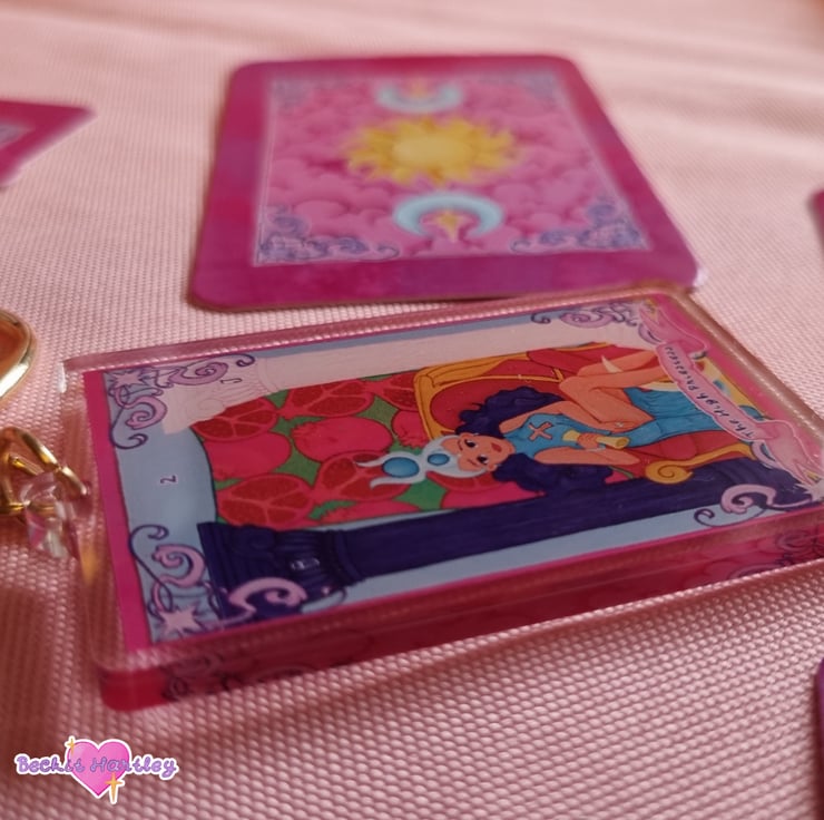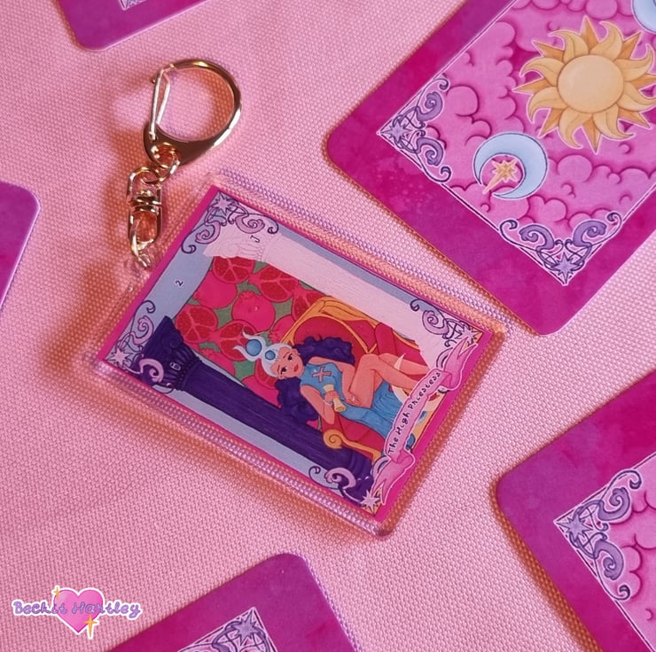 Featuring an original illustration of The High Priestess tarot card, inspired by the Rider-Waite deck a gold D hook clasp and approximately 6cm x 4cm in size, this keychain is the perfect accessory.