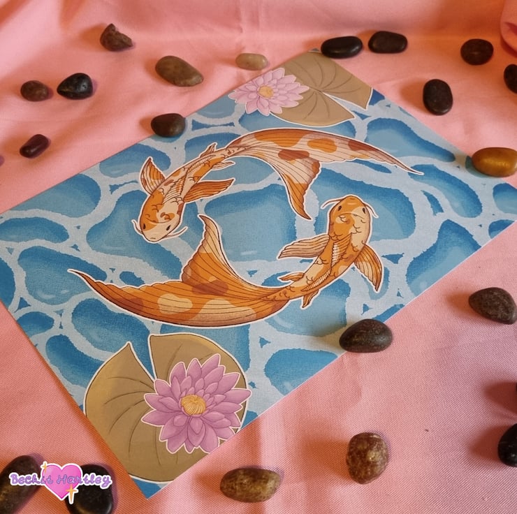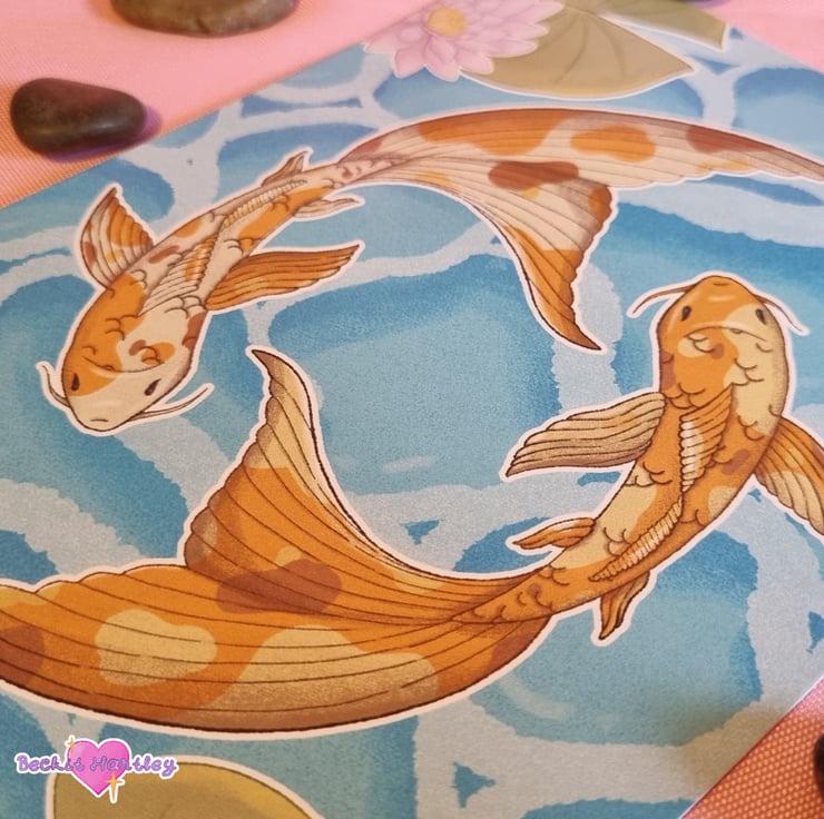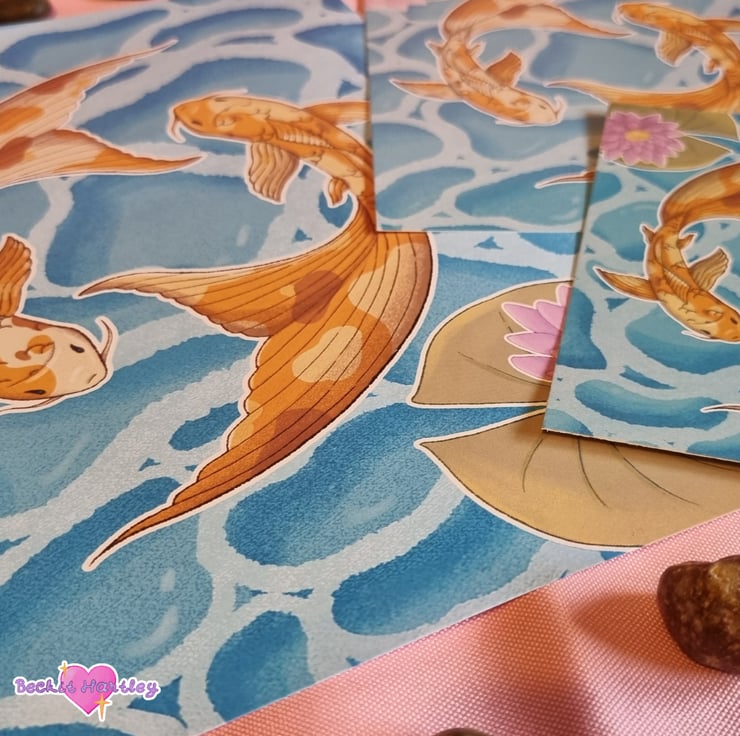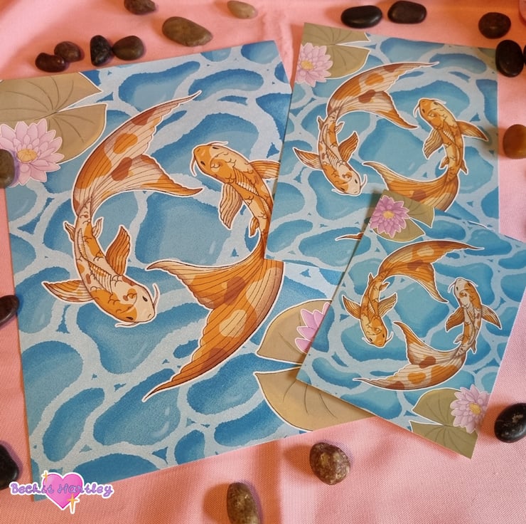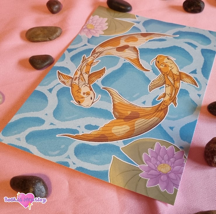 Featuring original illustrations of the koi carp from your secret garden, swimming together in harmony in the bright water, these A4 art prints would make a lovely addition to your walls.