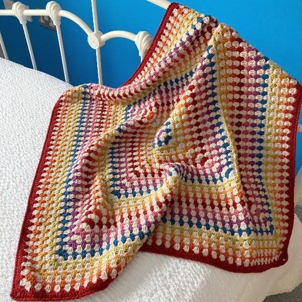This gorgeous granny square baby blanket has been crocheted in 100% Premium Acrylic, it is machine washable on 30 deg and can be tumble dried on cool