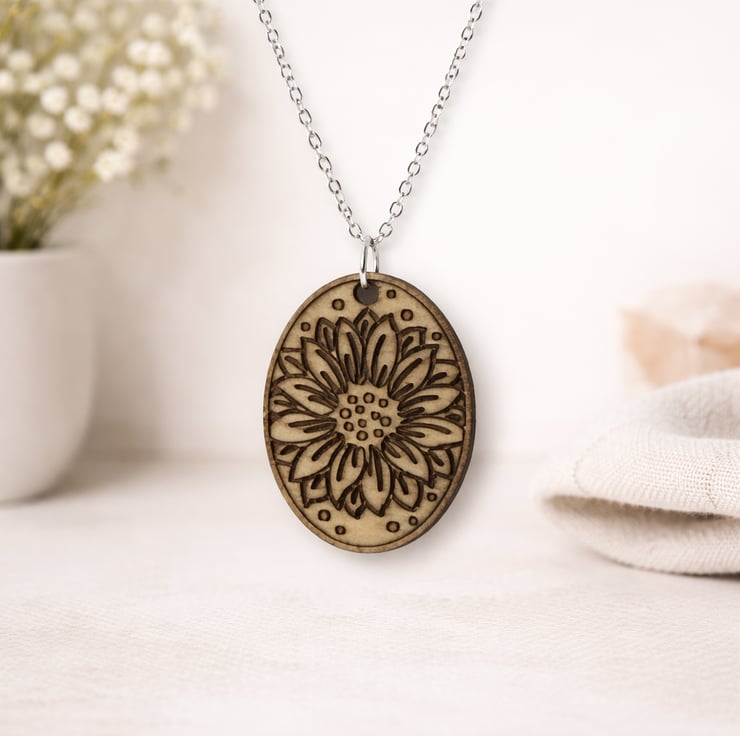 Necklace: https://folksy.com/find/item/8629164-Wooden-Floral-Necklace-Laser-Engraved-Pendant-UK-hand-made