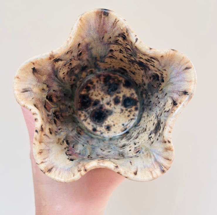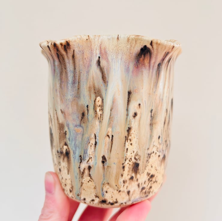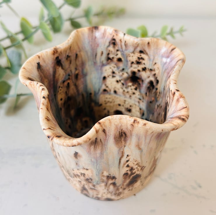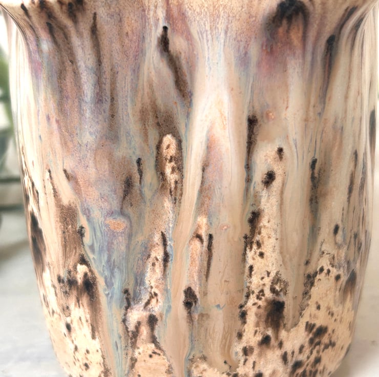 It’s finished with a beautiful speckled glaze which runs down the pot which adds beautiful tones of pinks and purples.