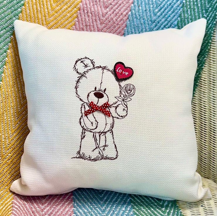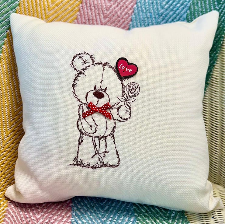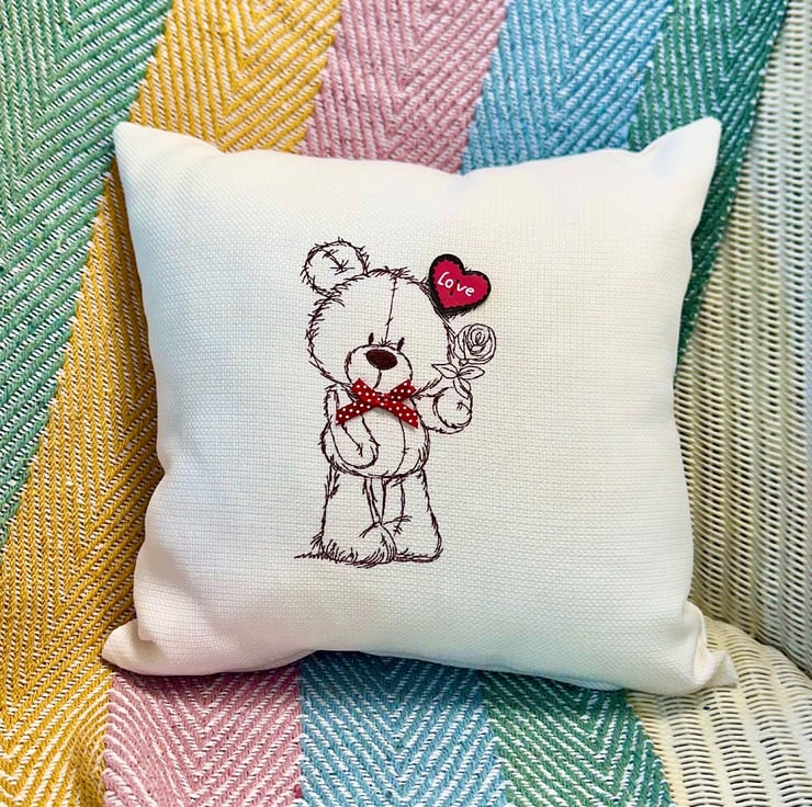 Teddy Bear Embroidered Cushion, complete with inner pad.