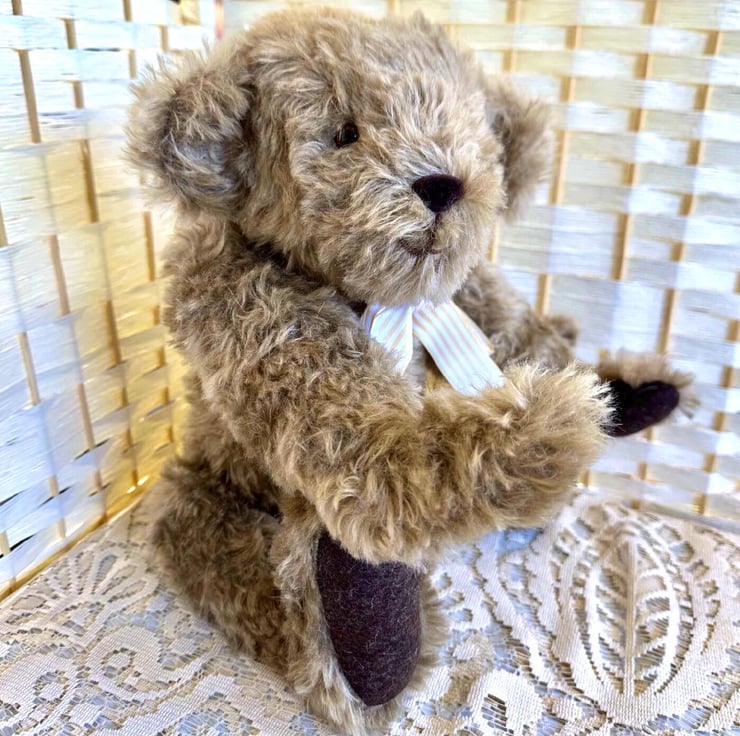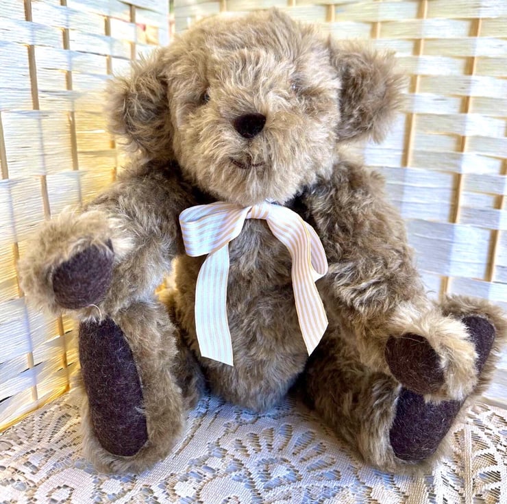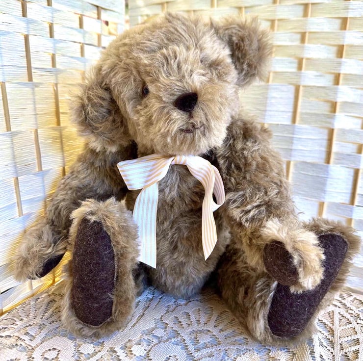 Louis is a sweet Bear made from 20mm Brown Mouse Whirly Mohair fabric, with 100% wool felt pads and paws.