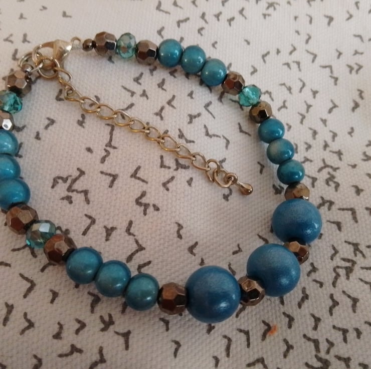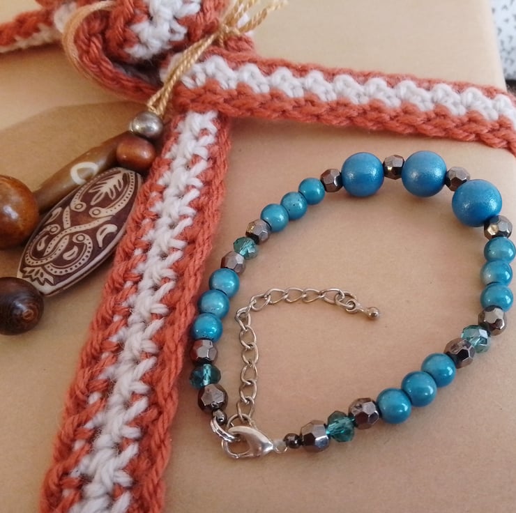 This handmade bracelet is made using a selection of beads in varying textures and blue/grey colours. The bracelet is made from pre-loved beads,