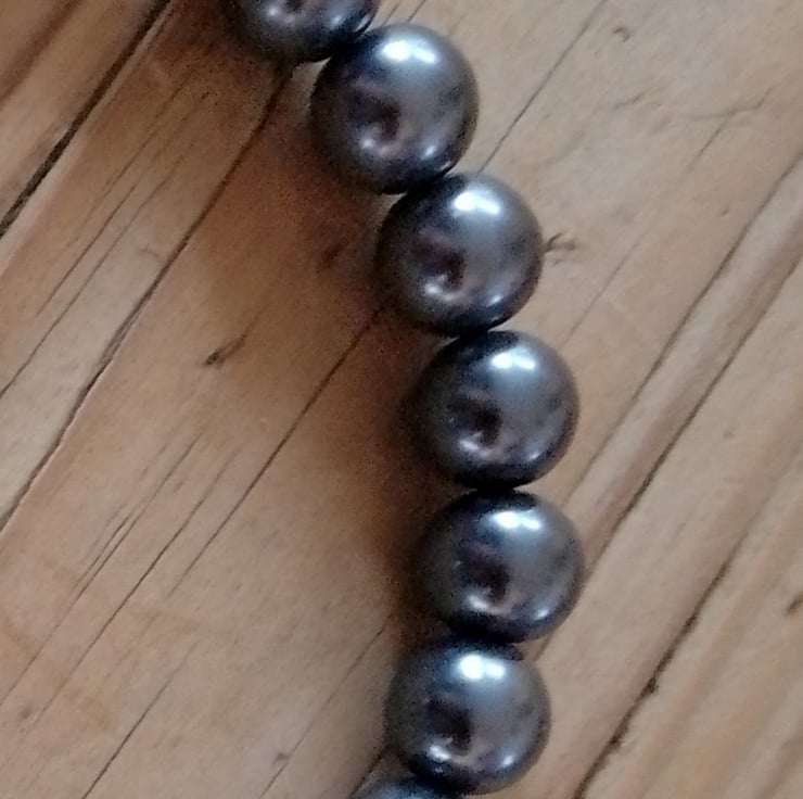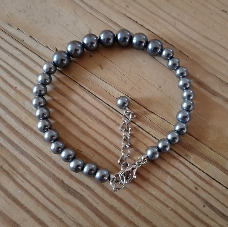 This handmade bracelet is made using a selection of graduating size beads with a metallic finish. This bracelet is a versatile and stylish piece for any occasion.