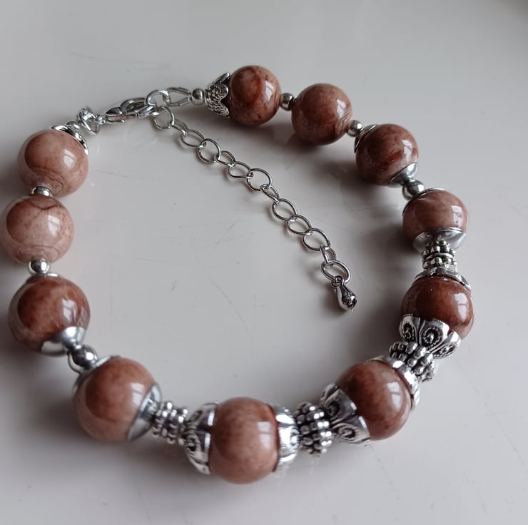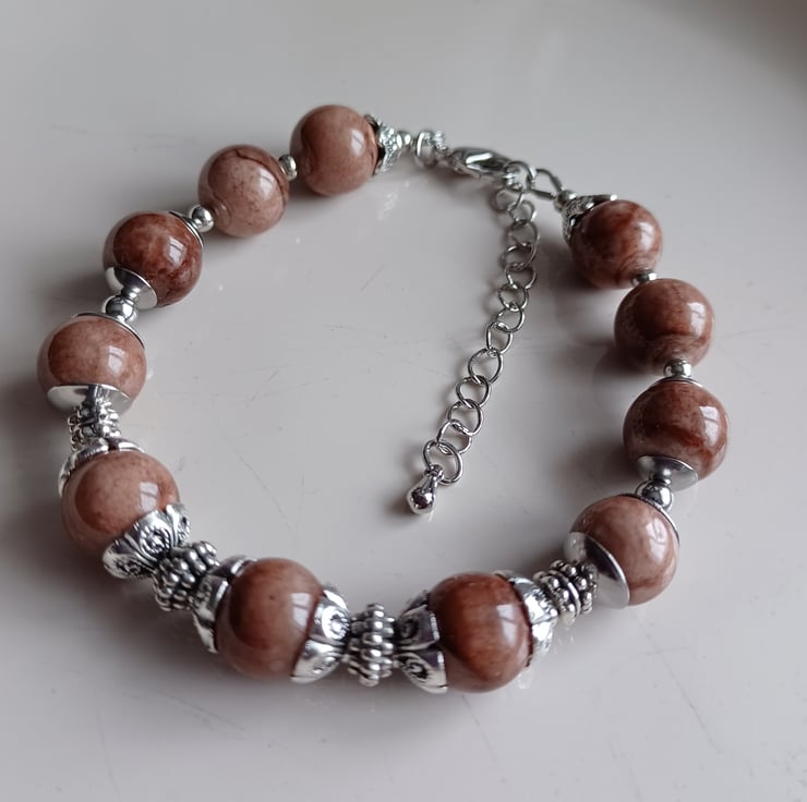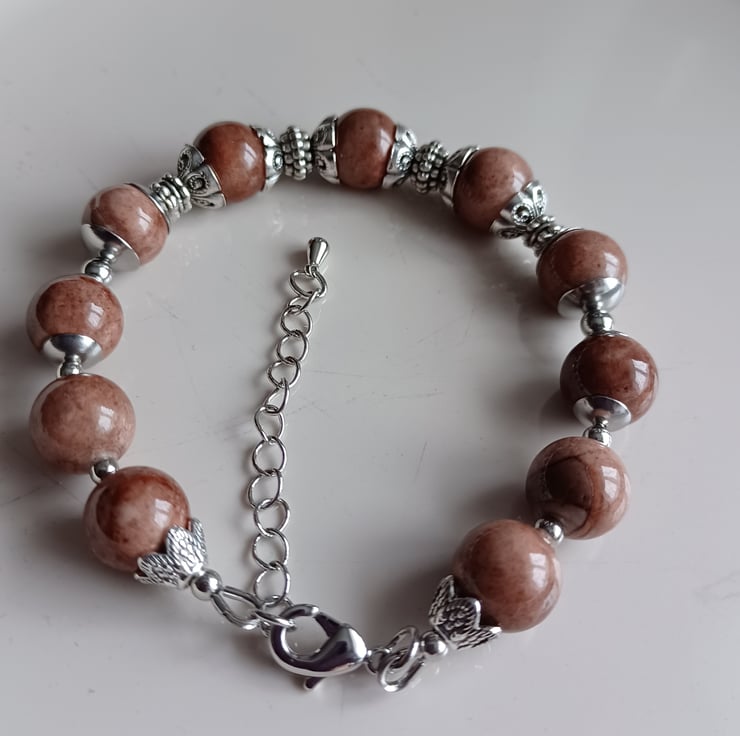 This bracelet is made using brown aventurine beads 10 mm in diameter. Also in this bracelet I used rhodium plated stainless still lobster claw and other fitting.