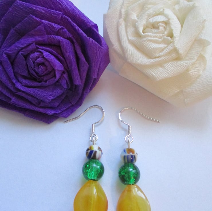 The beads size are 3mm, 5mm and 13mm and the pair's drop length is 3cm. Suitable for a wide range of styles from professional attire to party wear, and every age from 10 to 100 years!