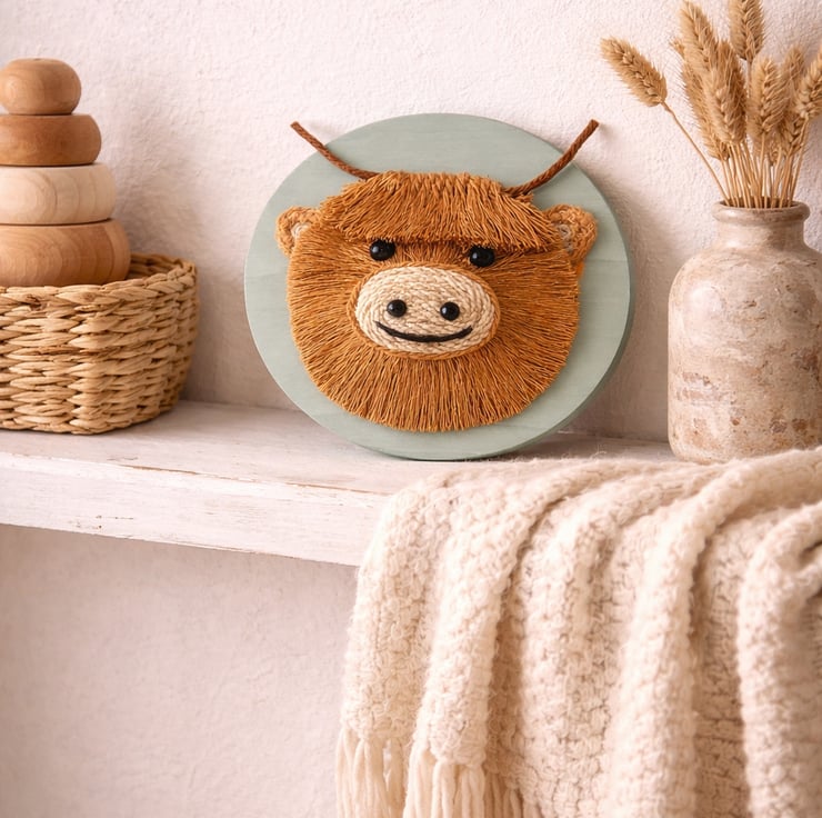 Highland Cow Wall Decor, Handmade Rustic Farmhouse Art,Country Cottage Gift.