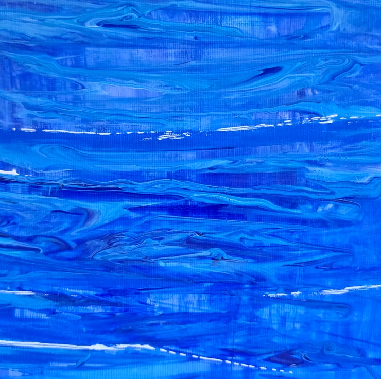 The deep blue canvas embodies Neptune: storm ridden, mysterious, and endlessly shifting. Its layered blues and sweeping currents echo the planet’s fierce winds and oceanic mythology, a world of depth and restless beauty.