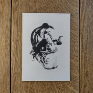 Monoprint of a bird at your service