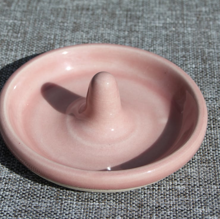 Are you constantly misplacing your rings? Do you not know where to put your jewellery when you book or bake? Do you want a cure decoration for you room? A ring dish will be perfect for you! Fired to c1200 degrees (stoneware temperature) which makes this ring dish durable and suitable for everyday use. Glazed in a gorgeous blossom pink colour.