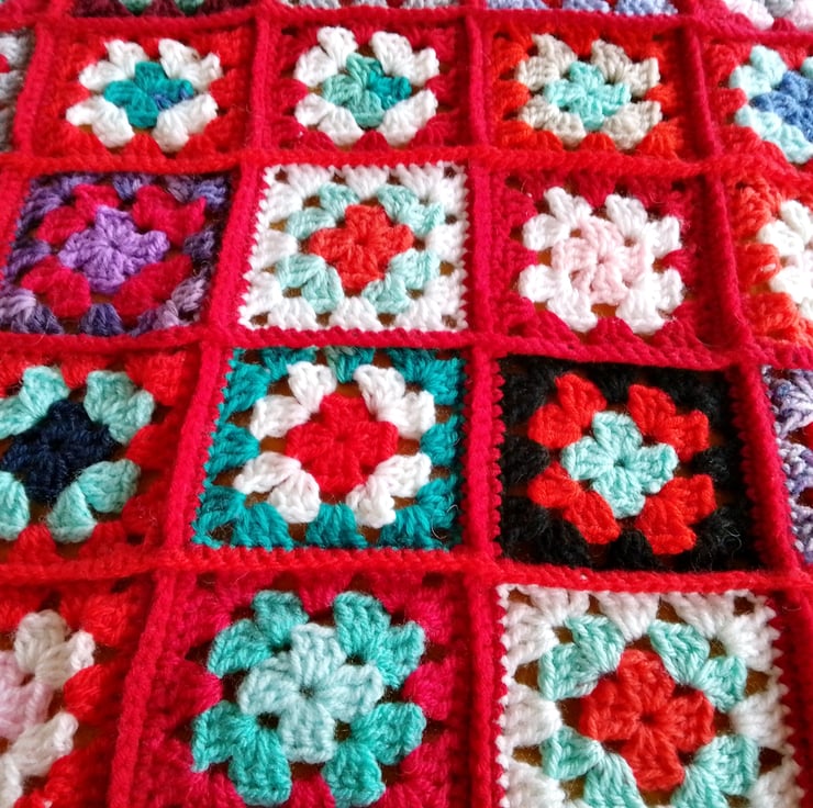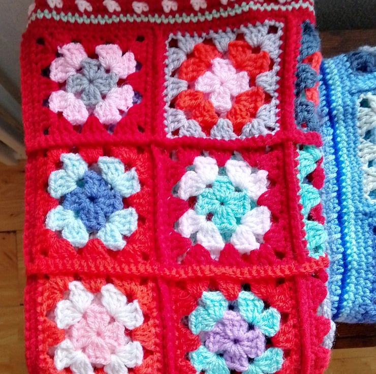 Each blanket is unique using slight variations in squares for each colour scheme.