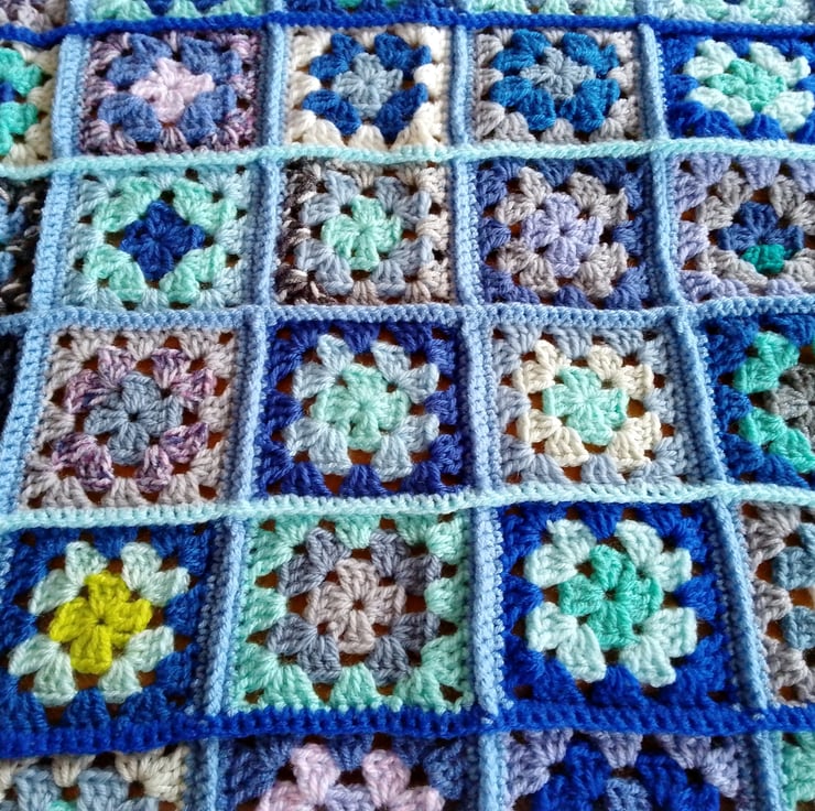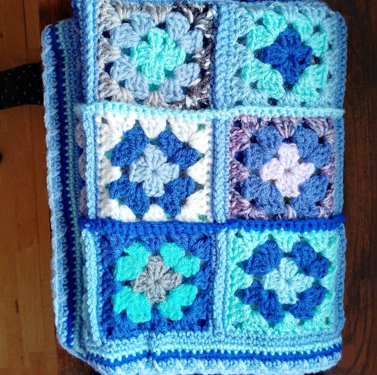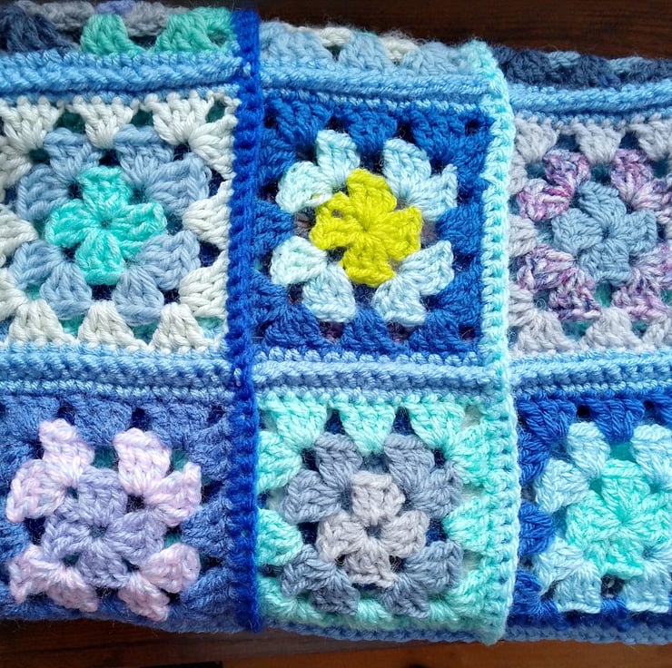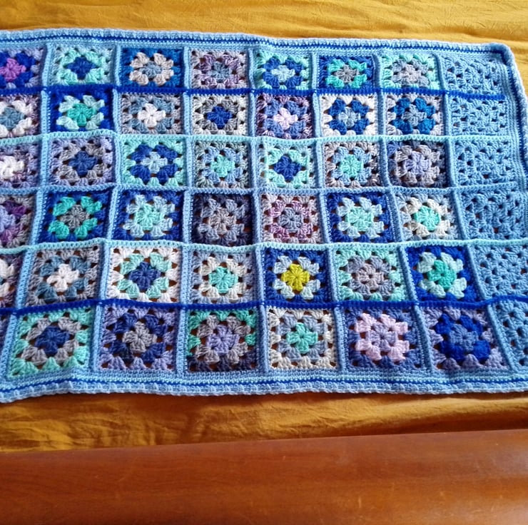 I made this blanket from yarn remnants but with a predominantly blue vibrant colourway.