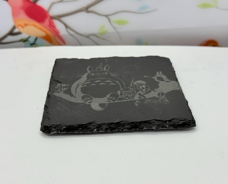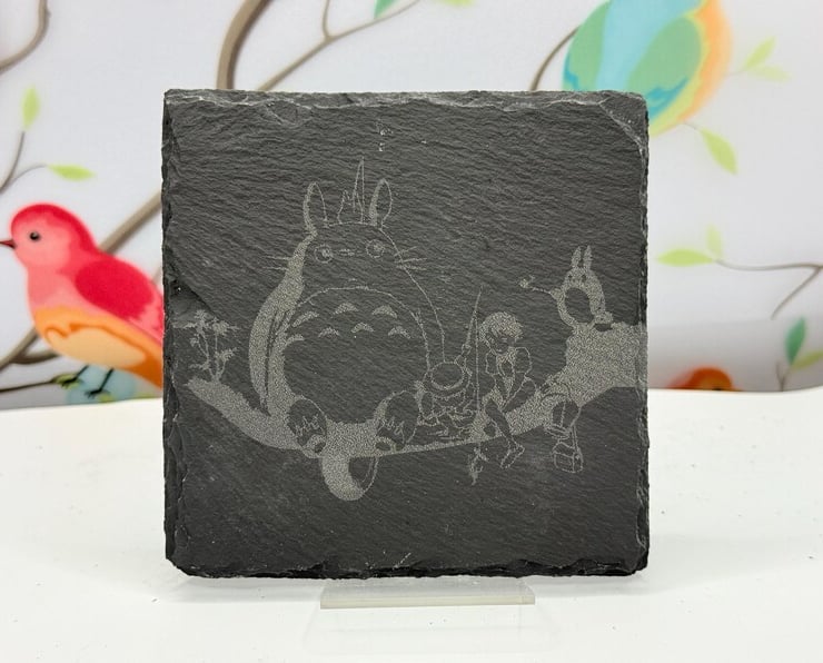 Kiki Totoro Slate Coaster, laser etched onto a slate coaster.