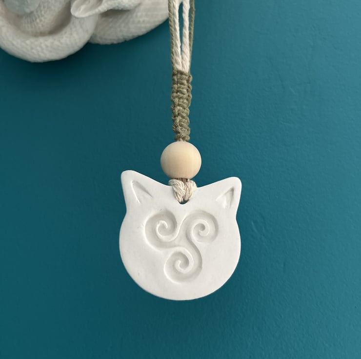 I’ve been wanting to create some hanging clay diffusers to sit alongside my tabletop ones, especially with a Celtic and cat theme in mind.