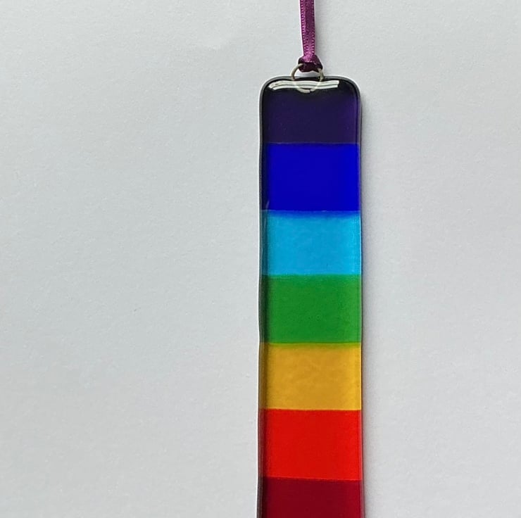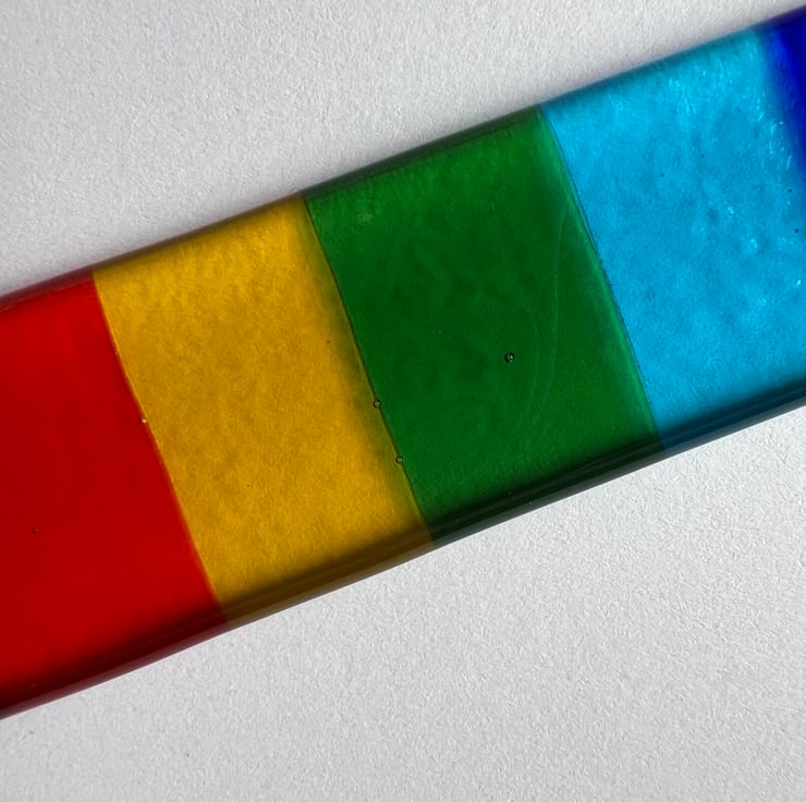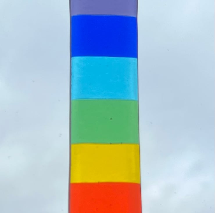 Own your very own rainbow! A pretty fused glass rainbow decoration to hang in your window will look lovely when the sun shines or will just cheer you up when it’s dull! Measuring approximately 14cm x 7cm, it has a ribbon to hang it anywhere.