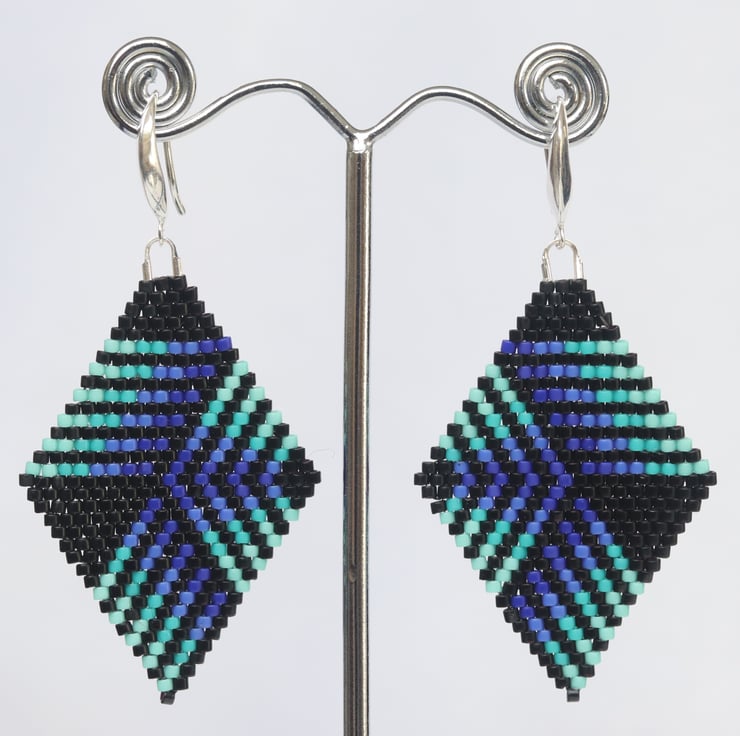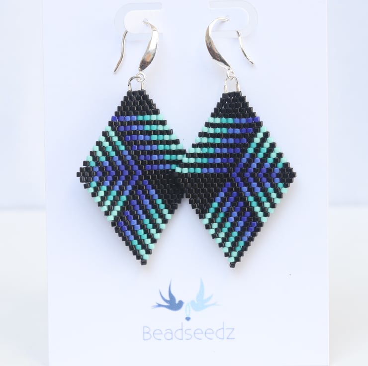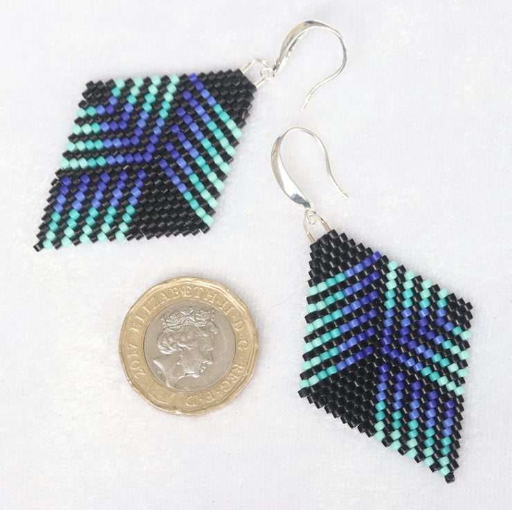 Each pair is carefully handmade using tiny glass Delica beads, stitched together with traditional brick stitch. Lightweight and comfortable to wear, they’re practical as well as stylish. They are finished with good quality sterling silver ear wires.